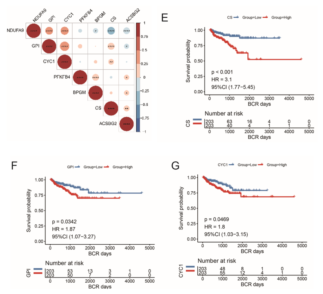 这项研究的主要结果显示,大多数线粒体代谢相关基因(MMGs)在PCa肿瘤样本中显着高表达。在不同的Gleason评分亚组中,MINPP1、ACOX1、ACOX2等基因也有明显的表达差异。单变量Cox回归分析显示,7个MMGs与无进展间期(PFI)显着相关,并且大多数MMGs之间存在显着相关性。