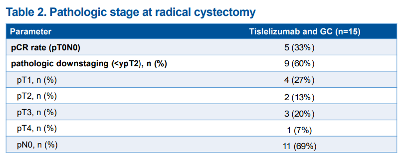 5.Lyu Q.,Yang X.,Cao Q.,Zhuang J.Tislelizumab in combination with gemcitabine plus cisplatin as neoadjuvant therapy for lymph node‐positive bladder cancer:Results of a prospective study.EAU24 A0904.