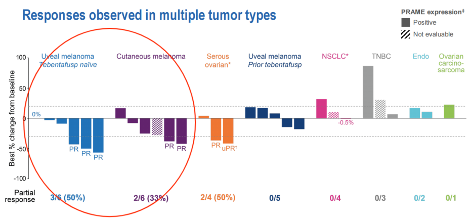 IMC-F106C(一种PRAME×CD3的新型ImmTAC双特异性蛋白)在既往接受过免疫检查点抑制剂(ICI)治疗的皮肤黑色素瘤(CM)患者中的Ⅰ期研究(摘要号:9507)[1]