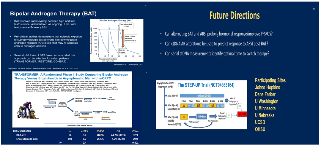 双相雄激素治疗是一种新的治疗方法,通过使血液中的睾酮迅速达到高于正常水平(即超生理水平)并在短期内再次达到去势水平,完成一次激素的快速循环。这项TRANSFORMER试验的血液标志物分析证实,ctDNA中的AR变异可能有助于识别从双相雄激素治疗中受益的患者。